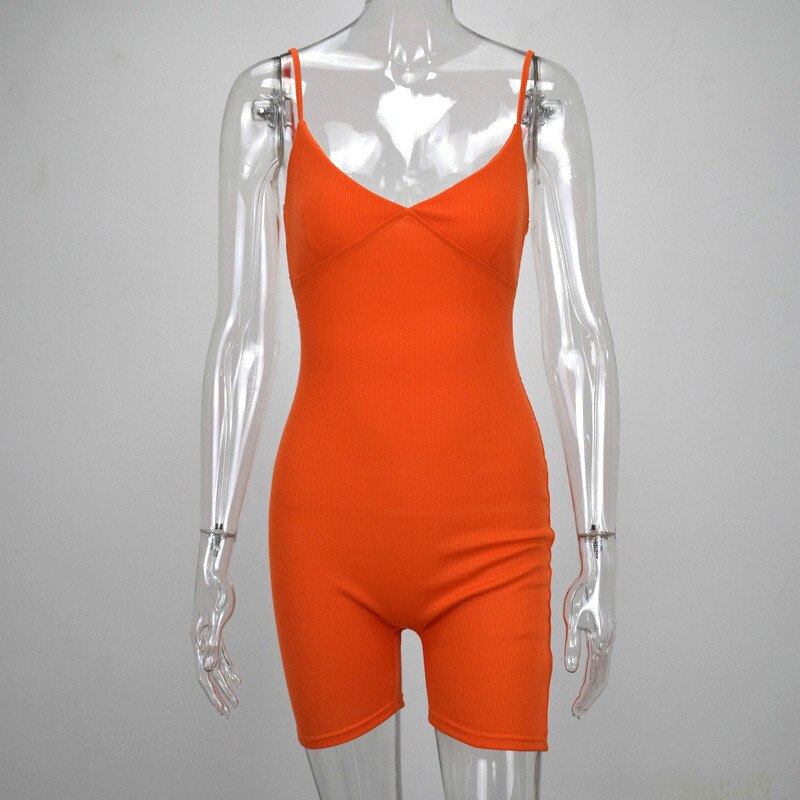 NCLAGEN Summer Sleeveless V Neck Bodycon Rompers Women Streetwear Fitness Spaghetti Strap Playsuit Short Jumpsuit Outfit