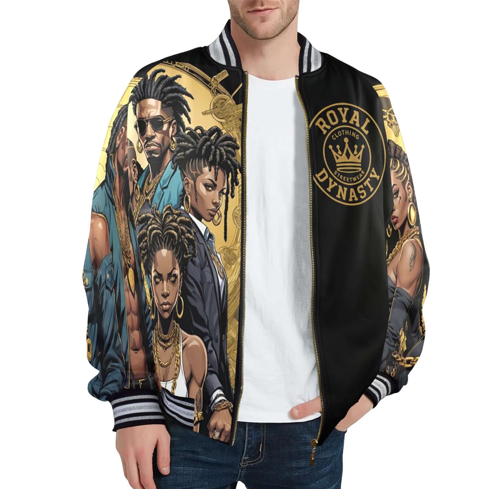 ROYAL DYNASTY 1 Men's Striped Trim Bomber Jacket (H21)